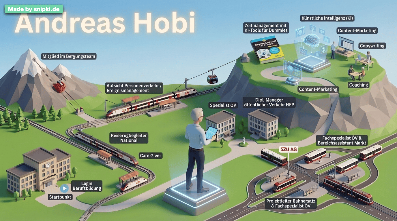 Diese Woche habe ich etwas ausprobiert: Ich wollte wissen, wie schnell eine KI meinen bisherigen beruflichen Weg visualisieren kann, wenn ich ihr den Link zu meinem LinkedIn-Profil zur Verfügung stelle. Einfach nur aus Neugier. Das Ergebnis siehst Du oben: eine komplette Landschaft meines beruflichen Lebens, generiert in weniger als zwei Minuten.